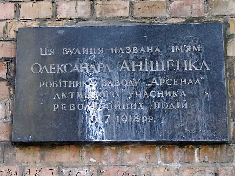 2009 р. Дошка на пам’ять про назву вулиці на честь О.АніщенкаРозмір зображення: 800:600 піксел 16 квітня 2009 р. Фото М.І.Жарких. |