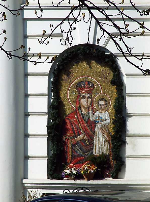 Мозаїка “Богородиця Дороговказниця” Розмір зображення: 595:800 піксел 16 квітня 2009 р. Фото М.І.Жарких. Вкладені елементи Загальний вигляд (+)