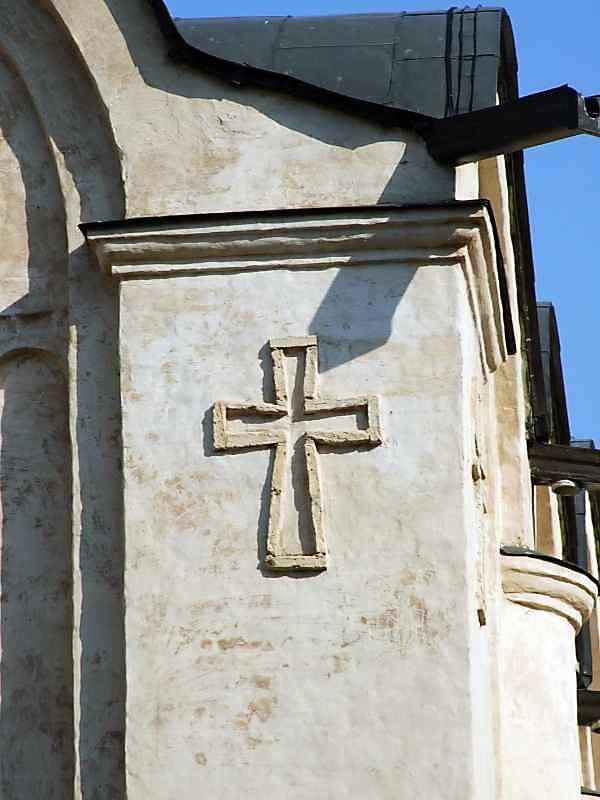 Хрест на південній пілястрі Розмір зображення: 600:800 піксел 17 жовтня 2007 р. Фото М.І.Жарких. Попередня сторінка | Вище | Наступна сторінка