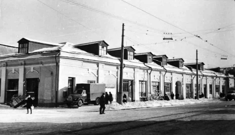 1971 р. Західний фасадРозмір зображення: 928:536 піксел Фото Валентин Шевченко 1971 р. Нині фото зберігається у Державній науковій архітектурно-будівельній бібліотеці. |