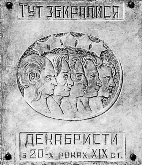 Меморіальна дошка декабристамРозмір зображення: 575:666 піксел Джерело: Звід пам’яток історії і культури України. – К.: 1999 р., т. 1 (Київ), с. 485. |