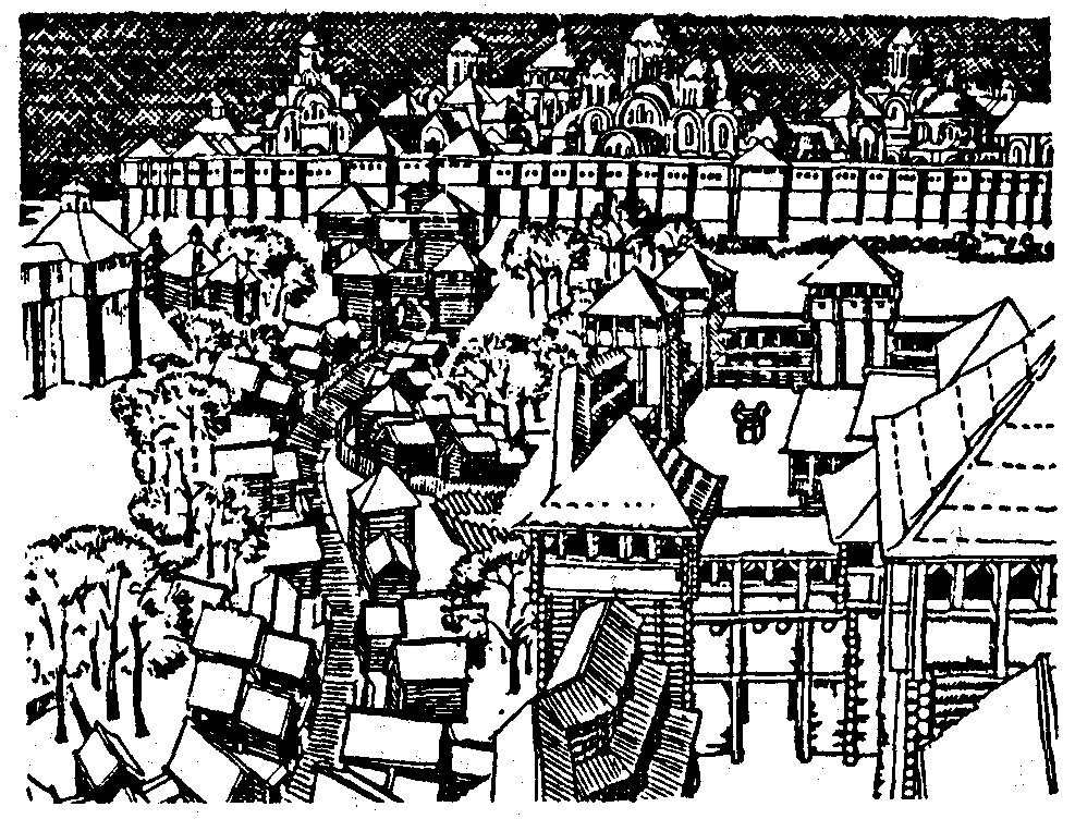 В садибах монастирів і в сусідстві з ними виникали житлові квартали ремісників. Фрагмент одного з них, так зване житло художника, виявлено в 1938 – 39 у садибі стародавнього Димитрівського монастиря. Як показали пізніші дослідження, напівземлянкові житлові будівлі були підклітями і в умовах Києва використовувалися для господарських і виробничих потреб.