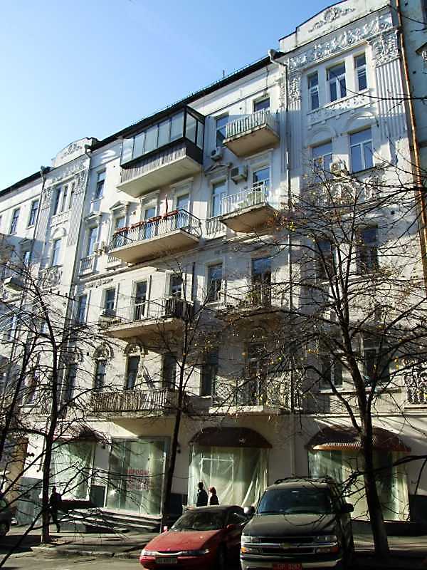 2008 р. Права частина головного фасаду Розмір зображення: 600:800 піксел 9 листопада 2008 р. Фото М.І.Жарких. Вкладені елементи 4-5-й поверхи (+) Рельєфна вставка 5-6-й поверхи Вікно 3-го поверху (+)