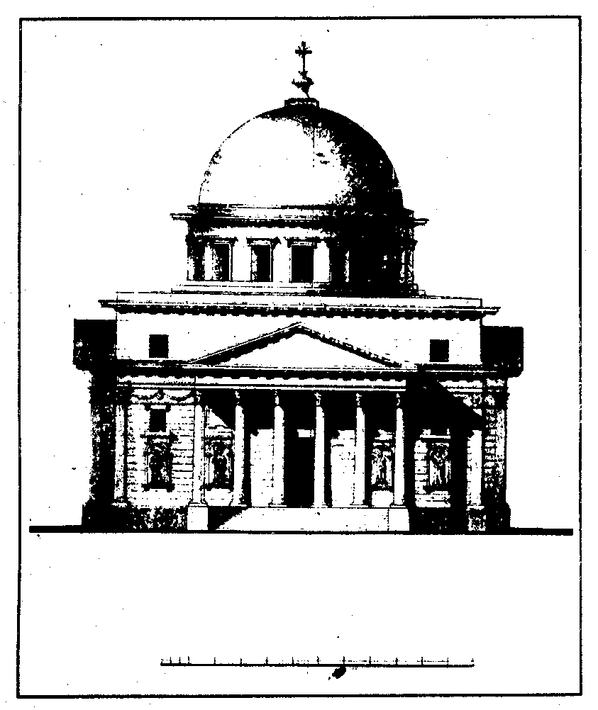 Фасад костелу за проектом архітектора Пілера. Копія архітектора Л.Станзаш, 1835 р. З…