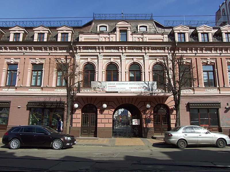 2020 р. Середня частина фасаду по вул. КостянтинівськійРозмір зображення: 800:600 піксел Фото М. І. Жарких, 16 березня 2020 р. |