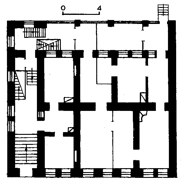 План 1 поверху до реконструкціїРозмір зображення: 598:604 піксел Джерело: Звід пам’яток історії і культури України. – К.: 1999 р., т. 1 (Київ), с. 489. |
