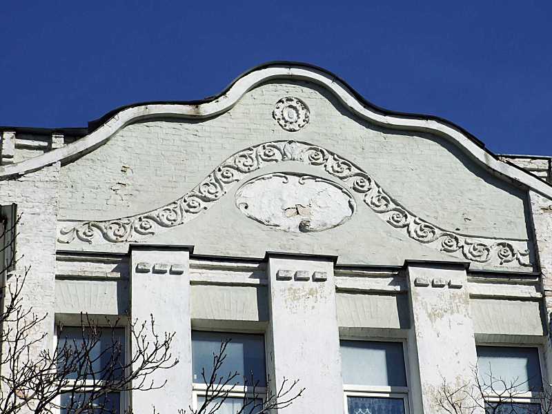 Сецесійний фронтон Розмір зображення: 800:600 піксел Фото М. І. Жарких, 16 березня 2020 р. Попередня сторінка | Вище | Наступна сторінка