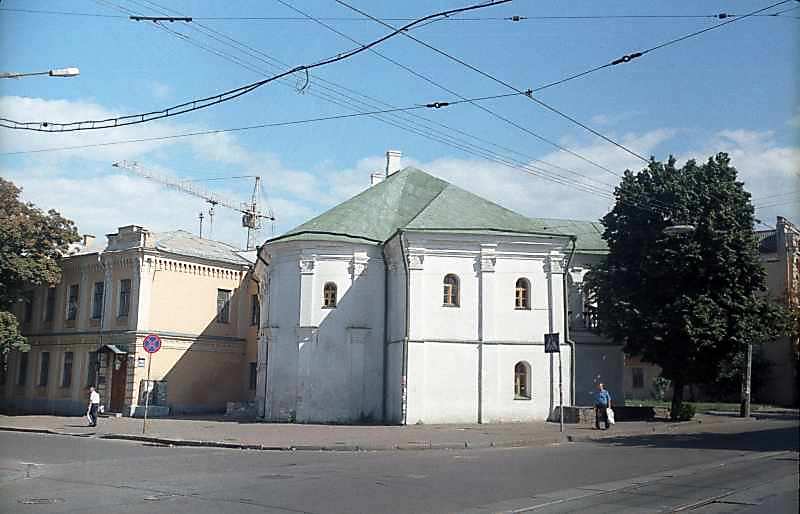2001 р. Загальний вигляд із заходуРозмір зображення: 800:514 піксел Ліворуч – вул. Хорева, праворуч – вул. Костянтинівська. 2001 р. 26 серпня. Фото М.І.Жарких. Негатека, № 937-32. |