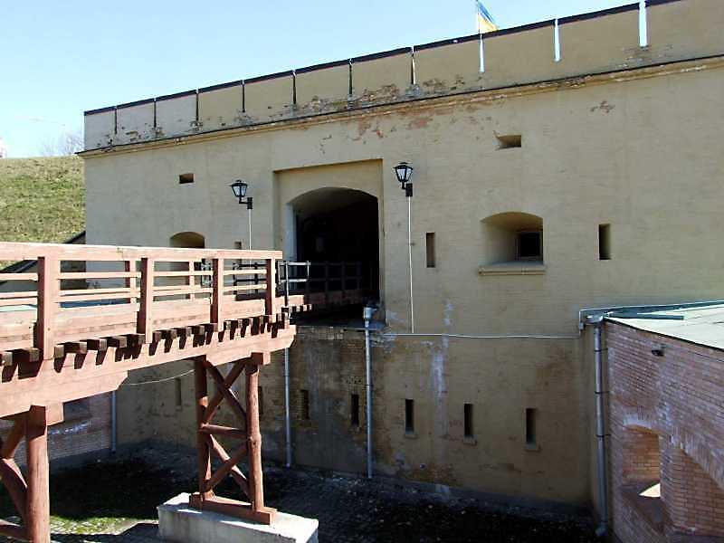 2009 р. Брама. Вигляд з північного заходу Розмір зображення: 800:600 піксел 2 квітня 2009 р. Фото М.І.Жарких. Вкладені елементи [2] Бійниці середнього ярусу (+) Бійниці нижнього ярусу