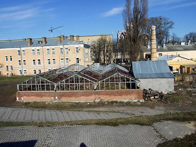 2009 р. Занедбані теплиці на тлі корпусу [офтальмології]. Вигляд із заходу