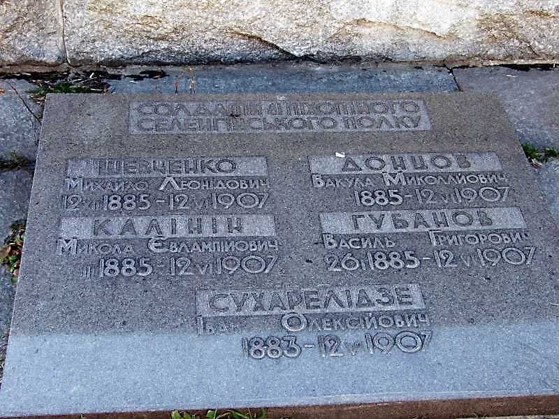 Пам’ятна плита М.Л.Шевченку, В.М.Донцову, М.Є.Калініну, В.Г.Губанову, І.О.Сухарелідзе