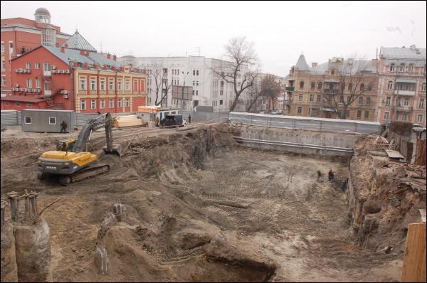 Торік 28 грудня будівельники почали рити котлован на вул. Фрунзе 23-25, на Подолі. Це величезна вирва, вона має 70х40 м і 8 м завглибшки. Тут планують звести офісний центр ”Щекавицький”, його замовник – підприємство ”Каштанове містечко”. Міські археологи стверджують, що територія будмайданчика становить археологічну цінність. Вона належить до пам’ятки археології ”Культурний шар Подолу ІХ-ХVIII століть”, говорить Івакін.