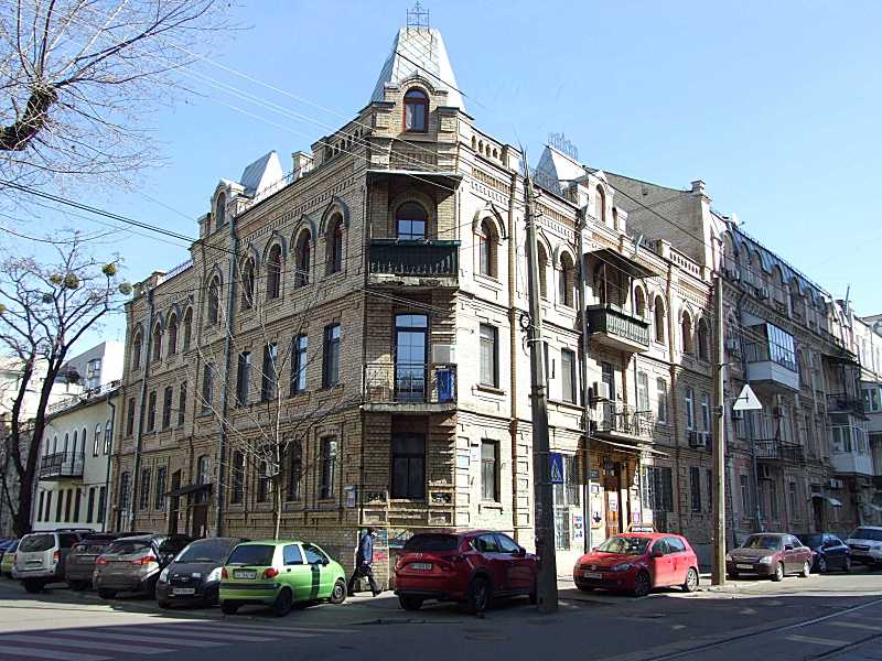 Житловий будинок (№ 26 / Оболонська, 2)Розмір зображення: 800:600 піксел Ліворуч – вул. Оболонська, праворуч – вул. Кирилівська. Фото М. І. Жарких, 16 березня 2020 р. |