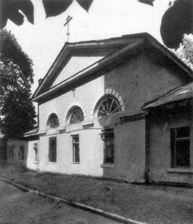 Будівля одноповерхова, дерев’яна, на цегляному фундаменті, хрещата у плані (арх. О. Кобелєв). Складається з центрального об’єму каплиці-покійницької на 10 трун та бічних крил для секційного приміщення і холодильника. В опорядженні фасадів використано тинькування та імітацію фахверків, що своєрідно членують площину стін на клітини. Піддашшя спирається на різьблені кронштейни. Дах вальмовий. Тепер використовується як лікарняний морг, ознаки культової споруди на фасадах відсутні. Є рідкісною за типологією та вирішенням декору спорудою; незважаючи на невеликий розмір, займає помітне місце у забудові садиби лікарні.