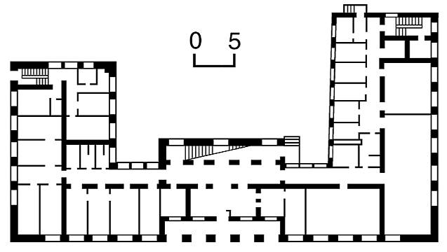 [2003 р.] План першого поверхуРозмір зображення: 637:360 піксел Джерело: Звід пам’яток історії і культури України. – К.: 2003 р., т. 2 (Київ), № 465a. |