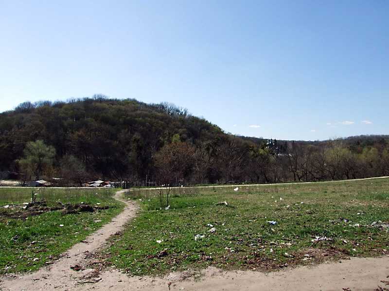 2011 р. Гора з городищем і Китаівська пустинь. Загальий вигляд з півночіРозмір зображення: 800:600 піксел 20 квітня 2011 р. Фото М.І.Жарких. |