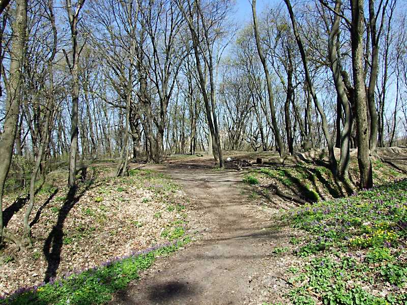 2011 р. Рів, що відділяє північну площадку (в глибині). Вигляд з південного сходуРозмір зображення: 800:600 піксел 20 квітня 2011 р. Фото М.І.Жарких. |
