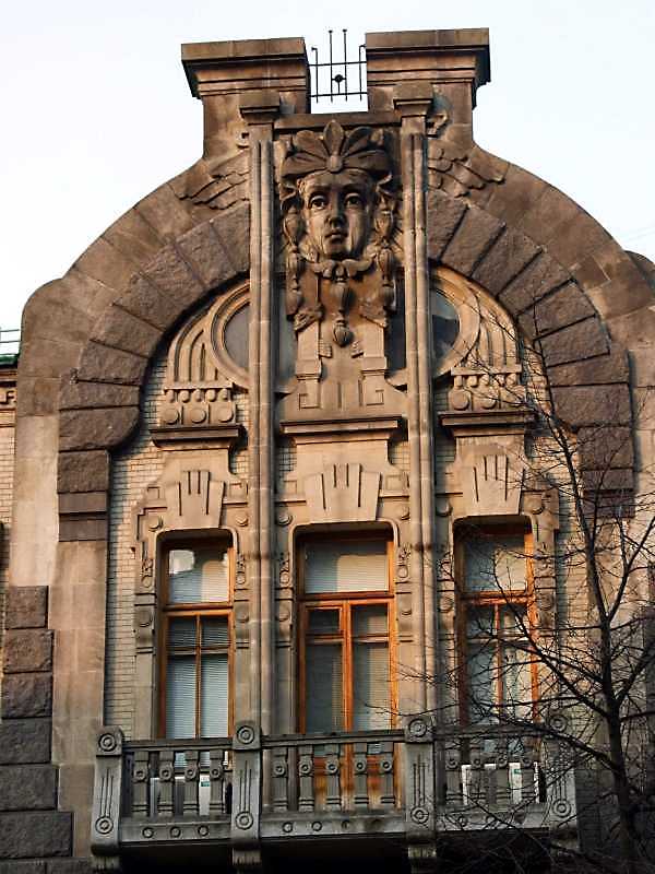 2-й поверх і фронтон Розмір зображення: 600:800 піксел 6 квітня 2009 р. Фото М.І.Жарких. Вкладені елементи Заплакана удова Вікна балкона