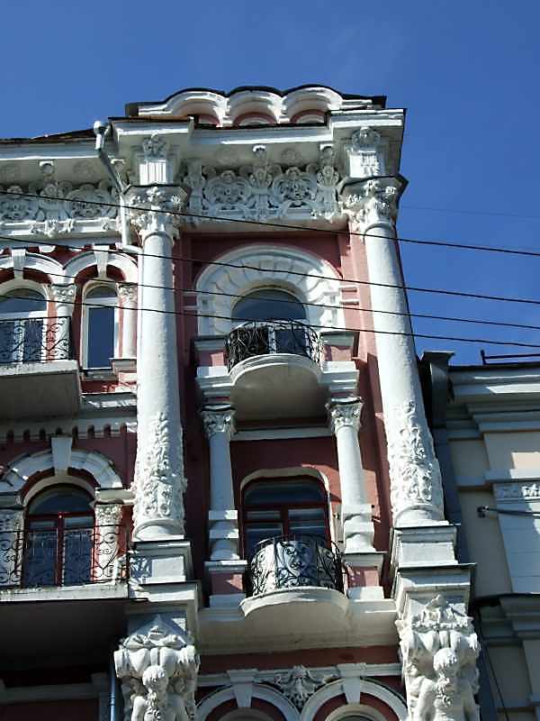 Фрагмент 4-5-го поверхів правого ризаліту Розмір зображення: 600:800 піксел 2008 р. 27 червня. Фото М.І.Жарких. Вкладені елементи Фронтон (+)