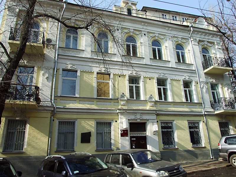 2012 р. Головний фасад Розмір зображення: 800:600 піксел 19 березня 2012 р. Фото М.І.Жарких. Вкладені елементи Фронтон Вікно 3-го поверху Вікно 2-го поверху Меморіальна дошка газеті «Работник» Вхід