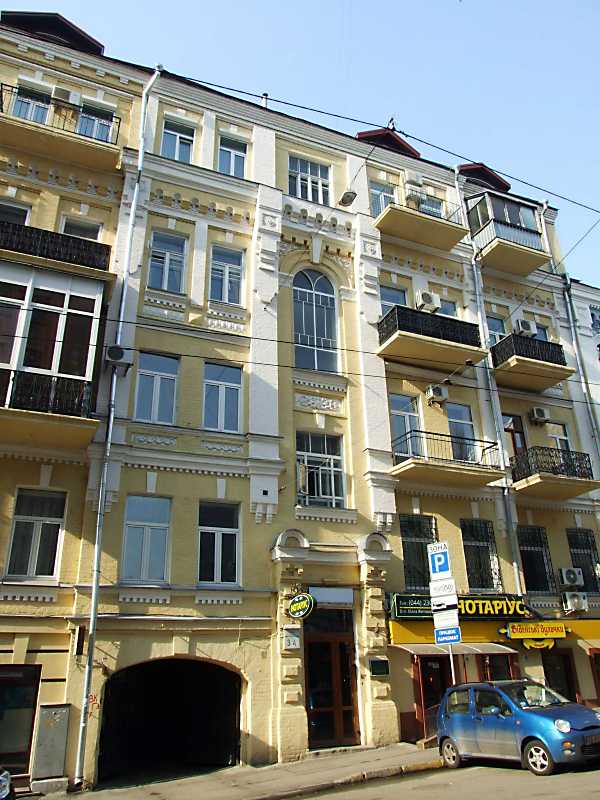 2012 р. Фрагмент фасаду по вул.Малій ЖитомирськійРозмір зображення: 600:800 піксел 19 березня 2012 р. Фото М.І.Жарких. |