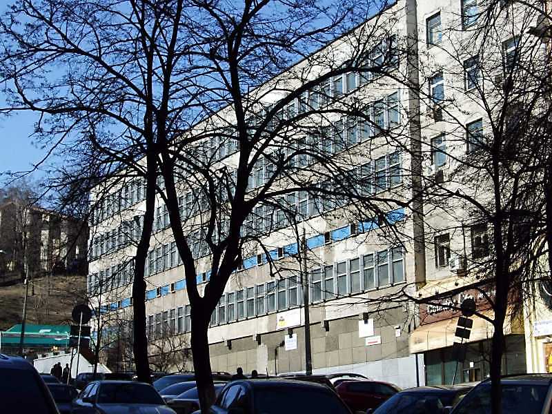 Виробничий корпус (№ 3а)Розмір зображення: 800:600 піксел Будинок має адресу по вул. Малопідвальній, але вид має кращий з боку вул. Борис Грінченка. |