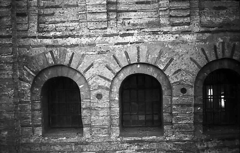 1976 р. Фрагмент північного фасаду. Вигляд з півночіРозмір зображення: 800:511 піксел 1976 р. 22 грудня. Фото М.І.Жарких. Негатека, № A217-13. |