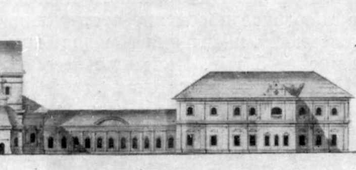 Корпус настоятеля. Північний фасадРозмір зображення: 705:336 піксел Здания Киево-Печерской лавры (XVII-XVIII ев.). Чертеж А. Меленского (нач. XIX в.). Джерело: Цапенко М. Архитектура левобережной Украины XVII – XVIII веков. – М.: 1967 г., с. 15. |