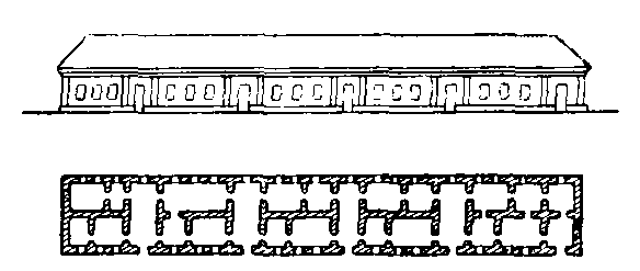 Фасад і планРозмір зображення: 584:247 піксел Джерело: Цапенко М. Архитектура левобережной Украины XVII – XVIII веков. – М.: 1967 г., с. 103. |