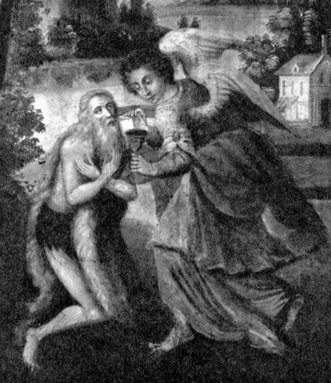 Центральна частина композиції Розмір зображення: 1054:1219 піксел Вкладені елементи Півпостаті св.онуфрія і ангела