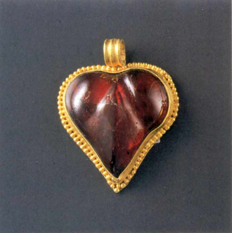 Золото, гранат. Розмір 1.6 : 1.3 см.