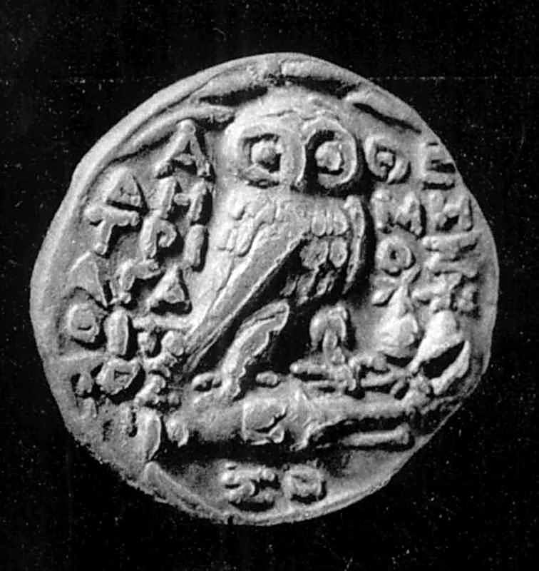 ТетрадрахмаРозмір зображення: 756:800 піксел Тетрадрахма. Аттіка, Афіни. II ст. до н. е. Срібло. Діаметр 4 см. Київський музей історичних коштовностей. Джерело: Античне мистецтво. – К.: Мистецтво, 1977 р., № 174. |