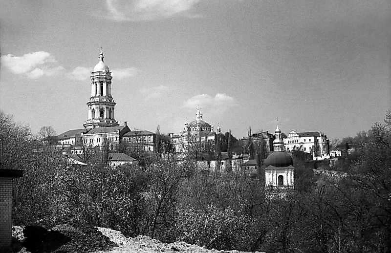 1983 р. Верхня лавра і Ближні печери. Вигляд з півдняРозмір зображення: 800:518 піксел 1983 р. 24 квітня. Фото М.І.Жарких. Негатека, № 184-38. |