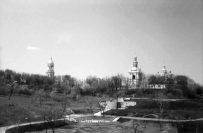 1983 р. Верхня лавра і Дальні печери. Вигляд з півдняРозмір зображення: 800:523 піксел 1983 р. 24 квітня. Фото М.І.Жарких. Негатека, № 187-25. |