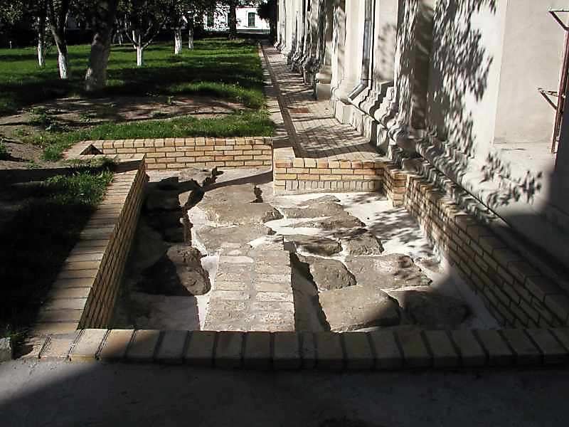 2005 р. Законсервовані фундаменти (недобудованої дзвіниці ?) на захід від великої дзвіниціРозмір зображення: 800:600 піксел 2 вересня 2005 р. Фото М.І.Жарких. |