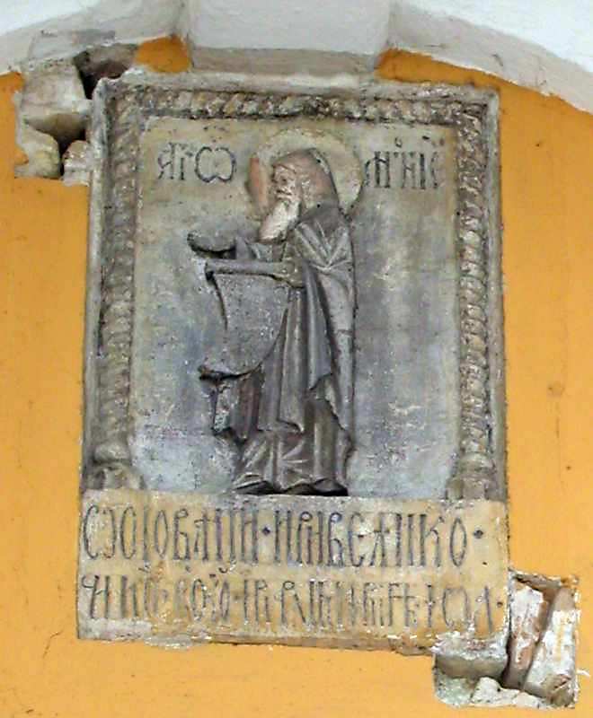 Рельєф св.Антонія у північній ніші 1 ярусу. Вигляд з півночіРозмір зображення: 660:800 піксел 2 вересня 2005 р. Фото М.І.Жарких. |