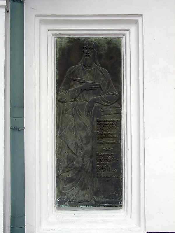 2005 р. Меморіальна дошка Нестору-літописцю на південній стініРозмір зображення: 600:800 піксел 2 вересня 2005 р. Фото М.І.Жарких. |