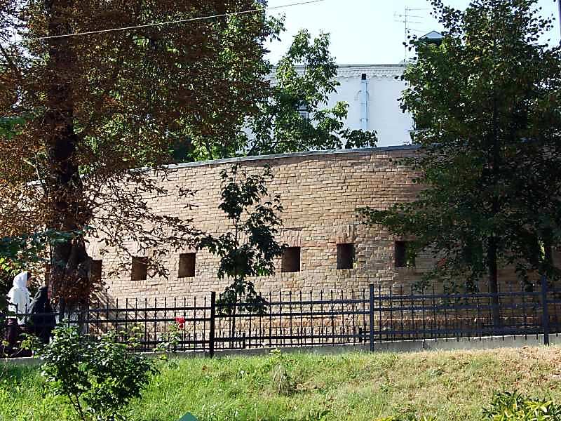 2007 р. Паркан (?) у вигляді оборонного муру вздовж дороги до Дальніх печерРозмір зображення: 800:600 піксел 18 вересня 2007 р. Фото М.І.Жарких. |