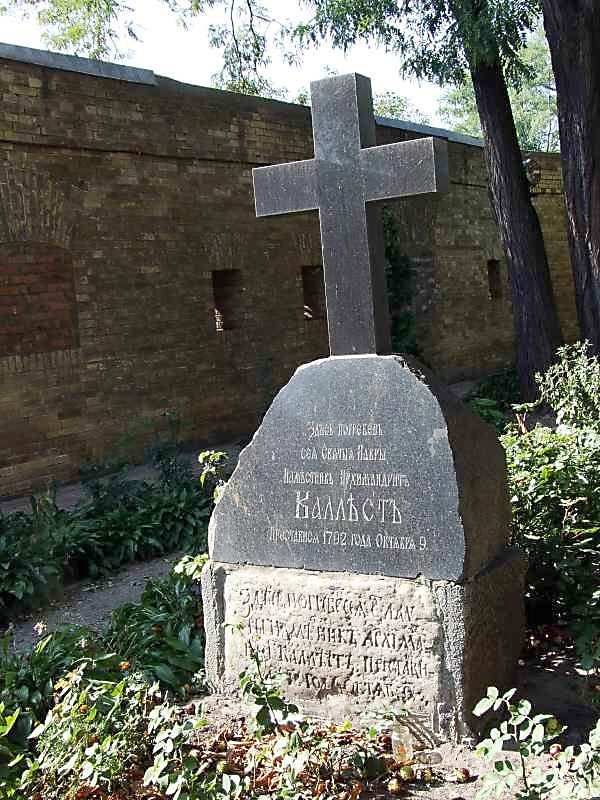 Могила архімандрита Калліста (Стефанова, 1724 – 1792)Розмір зображення: 600:800 піксел 18 вересня 2007 р. Фото М.І.Жарких. |
