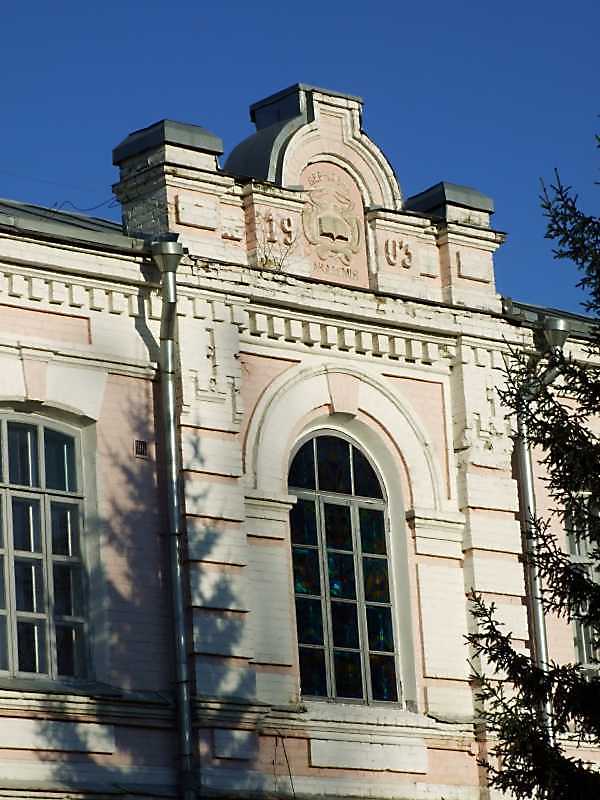 Фрагмент фасаду з фронтоном Розмір зображення: 600:800 піксел 7 листопада 2008 р. Фото М.І.Жарких. Вище | Наступна сторінка