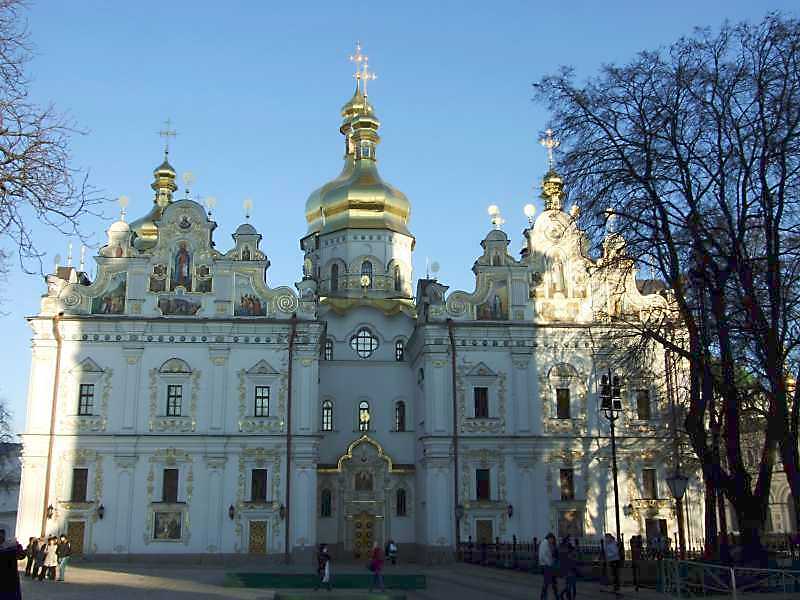 2008 р. Загальний вигляд із заходу Розмір зображення: 800:600 піксел 7 листопада 2008 р. Фото М.І.Жарких. Найчастіше переглядають Митрополит Петро Могила Преп. Полікарп ігумен печерський Північна частина західного фасаду Нижня частина Похорон Феодосія Верхня частина Вкладені елементи (1) 2 3 4 Північна частина західного фасаду Фронтон Ліва частина Верхня частина Преп. Стефан ігумен печерський Заснування Успенського собору Бог і князь Учасники заснування Центральна частина Верхня частина Ісус Христос вседержитель Ліва група сюжетів Явління ангела Феодосію Заповіт [?] Феодосія Св. Феодосій Печерський Півпостать Напис Права група сюжетів Феодосій копає печеру Похорон Феодосія Ліва група Центральна група Права група Права частина Верхня частина Преп. Полікарп ігумен печерський Видіння Успенського собору Князь і бояри Вікно та ніша з іконою Ніша з іконою “Преображення” (1) 2 3 4