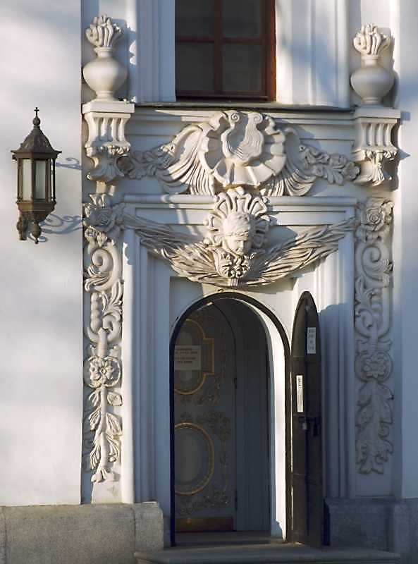 Західний портал південного фасаду Розмір зображення: 593:800 піксел 7 листопада 2008 р. Фото М.І.Жарких. Попередня сторінка | Вище | Наступна сторінка