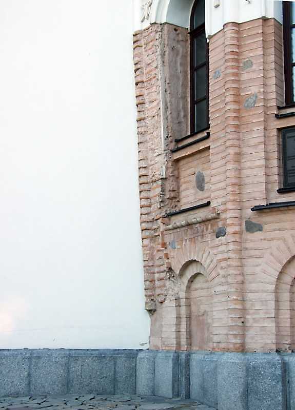 Фрагмент автентичної кладки в куті між контрфорсом і центральною опсидоюРозмір зображення: 575:800 піксел 7 листопада 2008 р. Фото М.І.Жарких. |