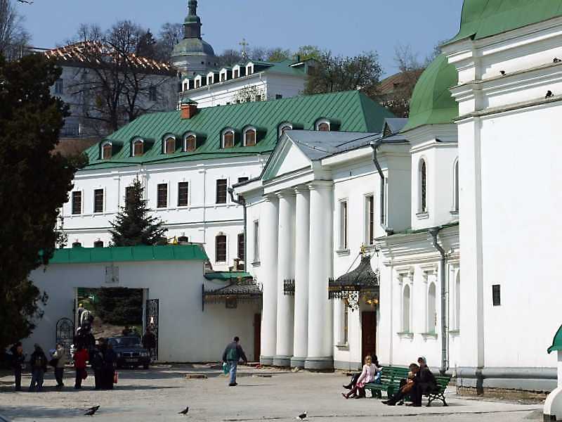 2009 р. Брама, корпуси 44, 48, трапезна. Вигляд зі сходуРозмір зображення: 800:600 піксел 16 квітня 2009 р. Фото М.І.Жарких. |