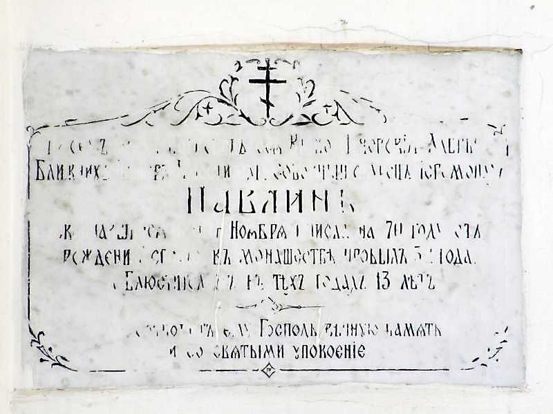 Надгробна дошка ієромонаха Павлина Розмір зображення: 800:600 піксел 16 квітня 2009 р. Фото М.І.Жарких. Вкладені елементи 2011 р. Звід пам’яток Києва