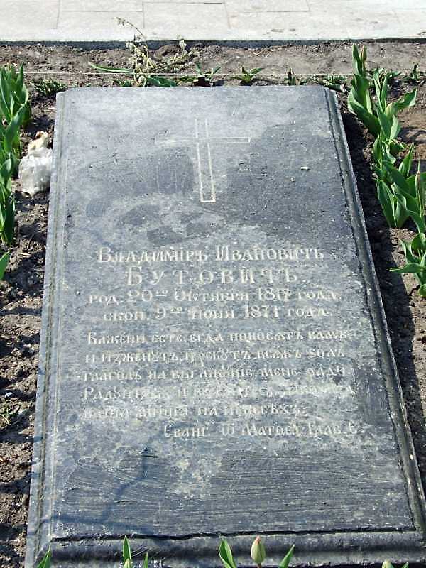 Могила В.І.Бутовича (1817 – 1871) Розмір зображення: 600:800 піксел 16 квітня 2009 р. Фото М.І.Жарких. Попередня сторінка | Вище | Наступна сторінка