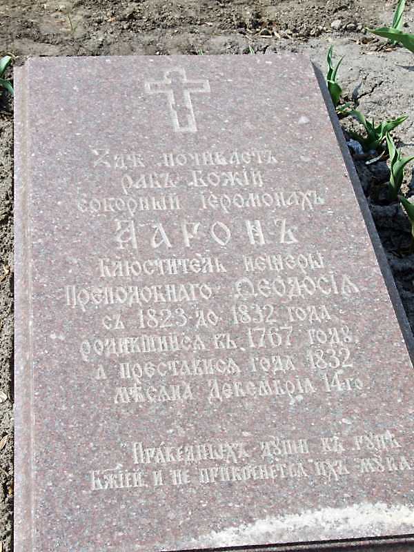 Могила ієромонаха Аарона (1767 – 1832) Розмір зображення: 600:800 піксел 16 квітня 2009 р. Фото М.І.Жарких. Вище | Наступна сторінка