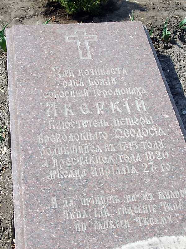 Могила ієромонаха Аверкія (1745 – 1820) Розмір зображення: 600:800 піксел 16 квітня 2009 р. Фото М.І.Жарких. Попередня сторінка | Вище | Наступна сторінка
