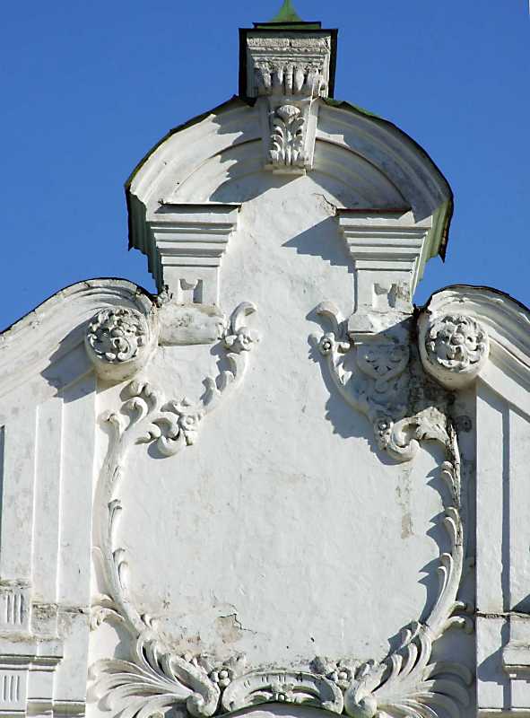 Фронтон над порталом Розмір зображення: 591:800 піксел 15 червня 2011 р. Фото М.І.Жарких. Вище | Наступна сторінка