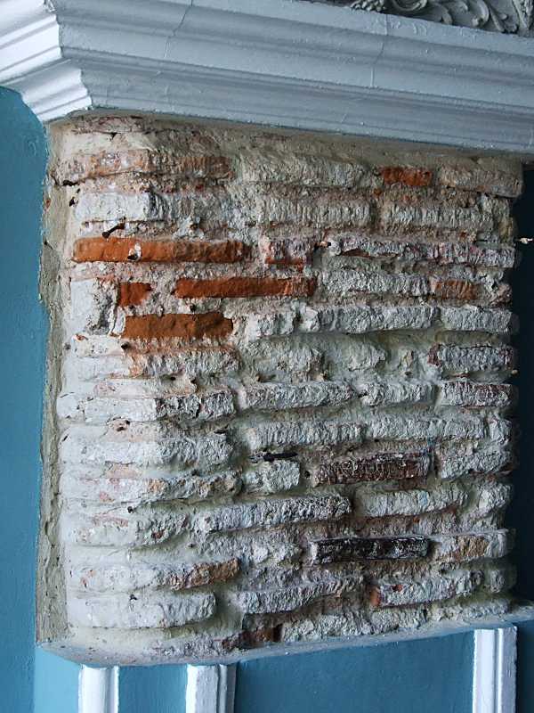 Зондаж. Вигляд з північного заходу Розмір зображення: 600:800 піксел Фото М. І. Жарких, 20 жовтня 2013 р. Вкладені елементи Червона плінфа в муруванні проходу Троїцької церкви Світла плінфа в муруванні проходу Троїцької церкви